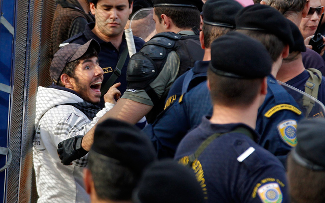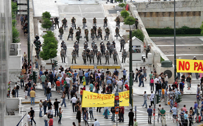 για να αντιμετωπίσει τις ειρηνικές αντιδράσεις των Αγανακτισμένων.
